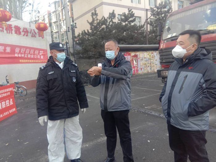 物業(yè)公司黨支部書記娜仁、經(jīng)理史濤等疫情防控領(lǐng)導(dǎo)小組成員還在項目現(xiàn)場參加出入人員登記、測溫、人員勸導(dǎo)疏散等防控工作。