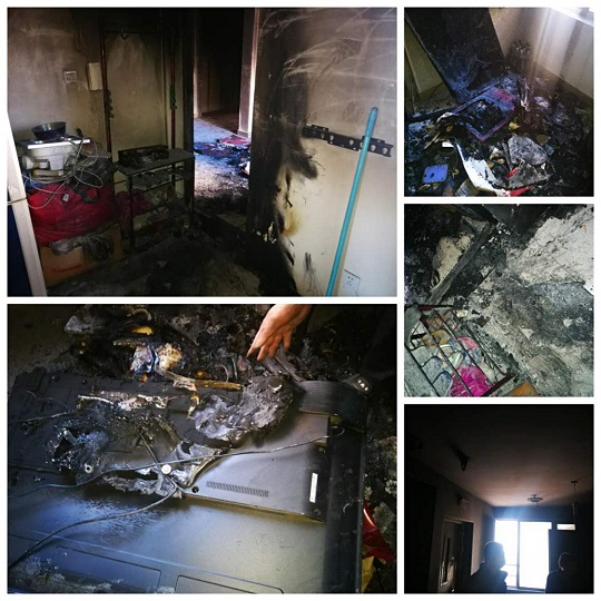 3月15日夜間12點30分,城發(fā)物業(yè)公司所服務(wù)的陽光美居公租房8號樓,812室電視機短路自燃引發(fā)火災(zāi),火苗迅速蔓延,被引燃的電視柜、沙發(fā)瞬間助推了火勢。當(dāng)住戶被濃煙嗆醒時,室內(nèi)狹小的空間已被濃煙和火苗占據(jù),住戶無法實施自救。