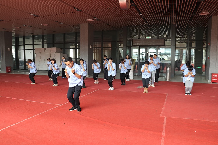 上午10:00第九套廣播體操的音樂準(zhǔn)時在一樓大廳響起,領(lǐng)操員王龍帶領(lǐng)全體職工就位,首先整理隊形,接著帶領(lǐng)大家從伸展運動開始在積極昂揚的音樂中聯(lián)系廣播體操,全體員工積極參與,認(rèn)真練習(xí)整個大廳充滿了活力、健康的氛圍,一天的高效工作由此開啟。
