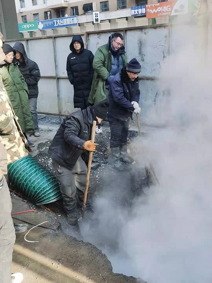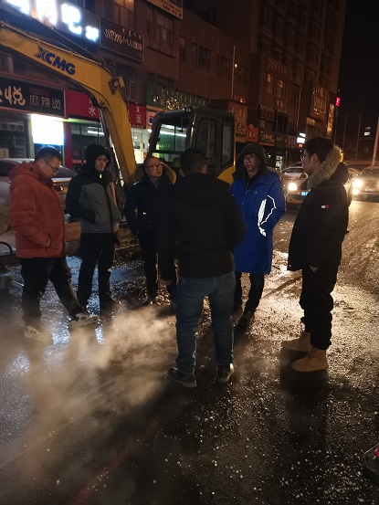 19日晚上10時(shí),歷經(jīng)15個(gè)小時(shí)搶修完畢。搶修結(jié)束后,搶修師傅們從挖開(kāi)的坑里出來(lái)后,身穿的工作服上沾滿了泥漿,衣服也被熱氣蒸濕了,時(shí)值寒冬,室外溫度零下16℃,衣服很快被凍硬。一位剛從坑里出來(lái)打著哆嗦的搶修師傅告訴筆者,管道里水的溫度近90°,溝里熱氣騰騰,身上都冒汗呢,但一出地面,100多度的溫差,感覺(jué)直接就凍到骨頭里了,腿都凍直了,邁不了步。