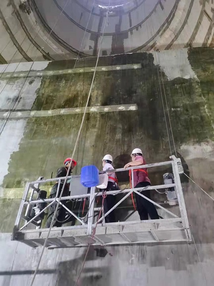 檢查小組通過采用外力敲擊及肉眼觀察的方式對B車間煙囪內(nèi)壁防腐層施工質(zhì)量進行詳細檢查。
