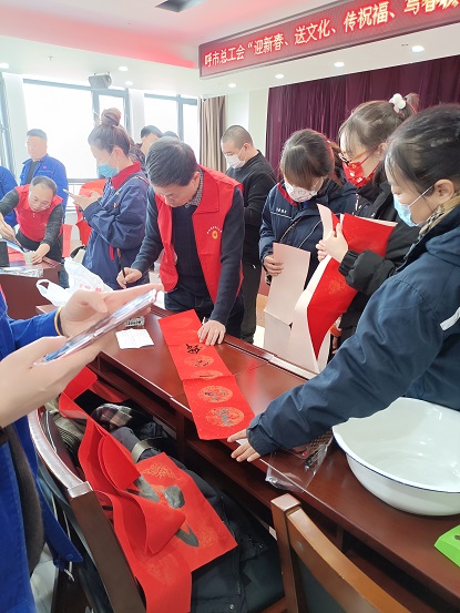 2022年春節(jié)將至,為營(yíng)造歡樂(lè)祥和的節(jié)日氛圍,弘揚(yáng)中華民族傳統(tǒng)文化,給集團(tuán)公司職工送上新春美好的祝福, 1月11日下午,呼和浩特市總工會(huì)、集團(tuán)公司工會(huì)組織70余名職工群眾在集團(tuán)18樓會(huì)議室開(kāi)展"迎新春、送文化、傳祝福、寫春聯(lián)"活動(dòng)。