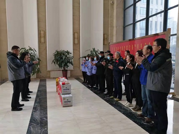 1月25日恰逢北方小年,城發(fā)物業(yè)公司黨支部書記娜仁、經(jīng)理史濤、黨支部副書記馬軍民等一行慰問組成員赴各在管項目走訪慰問,向春節(jié)期間堅守在物業(yè)工作崗位第一線的員工致以親切慰問,并為堅守崗位的員工送去了水果、餃子、熟食等慰問品。