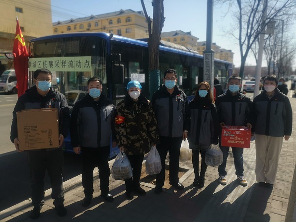 在核酸檢測現(xiàn)場,大家還看望了下沉到該社區(qū)擔(dān)當(dāng)防疫志愿者的物業(yè)公司黨支部書記娜仁同志,此刻的她正身穿防護(hù)服全神貫注地為排隊(duì)等候的居民逐一掃描、錄入身份證件信息。在中間休息的片刻時(shí)間,娜仁同志為大家簡單介紹了此處疫情防控的最新情況、防控要求及工作人員的配備、交接班制度及用餐作息等情況。她深有感觸地說:"社區(qū)的工作人員、志愿者們每天都很辛苦,厚重且不透氣的防護(hù)服一穿就是七個(gè)多小時(shí),中間不吃不喝,更不能上廁所,但大家都憑著堅(jiān)強(qiáng)的毅力堅(jiān)持了下來。每當(dāng)脫下厚重的防護(hù)服,大家都感覺渾身像散了架一樣,只想著立刻吃上一口熱乎飯,躺下來好好睡一覺。在這樣的持續(xù)堅(jiān)守下,大家卻毫無怨言,因?yàn)樗齻冎雷约杭缲?fù)的責(zé)任和使命是多么光榮和神圣。"她鼓勵(lì)前來慰問的同志們,在此次抗擊疫情的非常時(shí)期,公司全體黨員要充分發(fā)揮好一個(gè)黨員就是一面旗幟的作用,在做好本職工作的同時(shí),積極參加到社區(qū)疫情防控的隊(duì)伍中,去做些力所能及的事,為社區(qū)筑牢織密疫情防線貢獻(xiàn)力量!