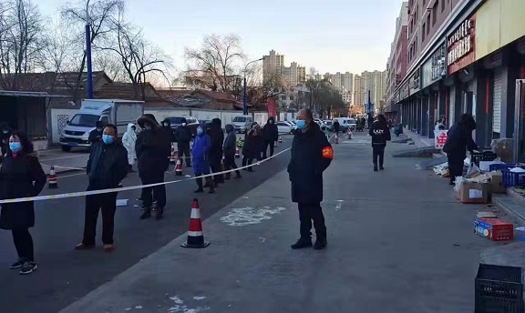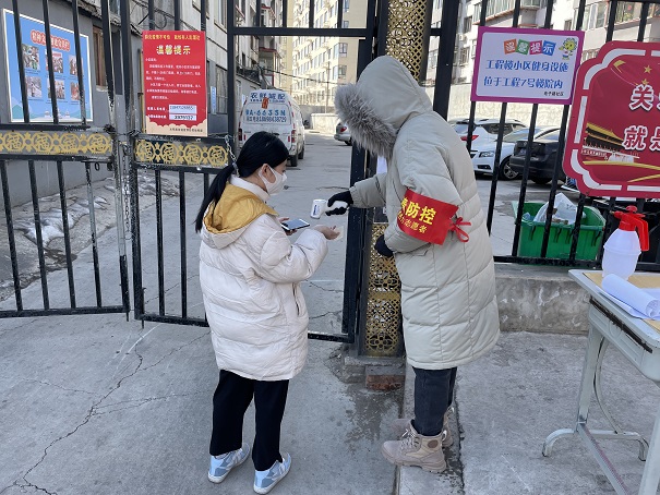 "沒事兒,天氣冷我堅持堅持就過去了,只希望疫情能快點兒結(jié)束。"2月28日下午,筆者在電子廠小區(qū)北口見到了正在寒風(fēng)中執(zhí)勤的新華東街分公司員工高晶晶。交談中筆者了解到,她每班要在這里堅守六個小時,沒有帳篷、也沒有取暖設(shè)備,看著她凍紅的雙手,聽著她沙啞的聲音,筆者叮囑她要多喝水,高晶晶說:"我這里離衛(wèi)生間還有一段距離,所以我盡量不喝水,以免漏檢一人。"