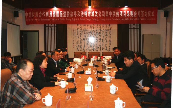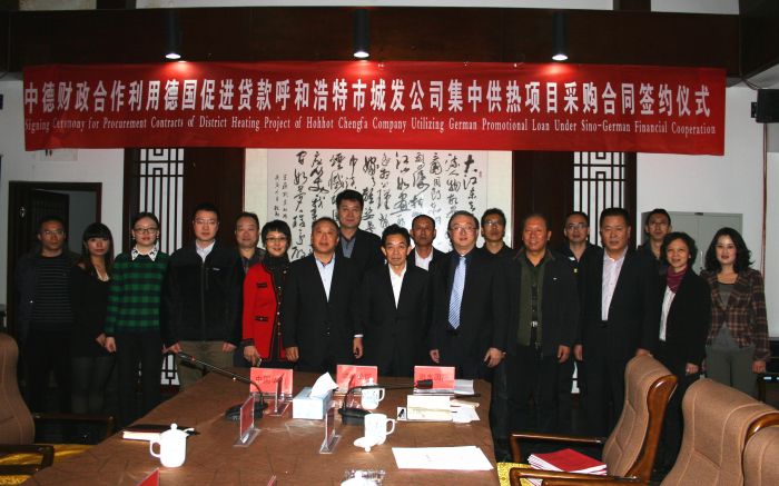 2014年11月26日,呼和浩特市城發(fā)公司舉行了中德財(cái)政合作利用德國(guó)促進(jìn)貸款建設(shè)呼和浩特市集中供熱項(xiàng)目采購(gòu)合同簽約儀式,標(biāo)志著本項(xiàng)目3500萬(wàn)歐元貸款資金正式啟用。