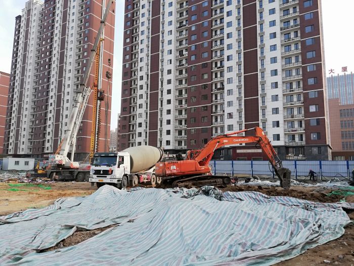 2月14日(正月初十),金城小區(qū)商業(yè)樓項目參建各方工作人員及施工機械全部入場,正式恢復施工。