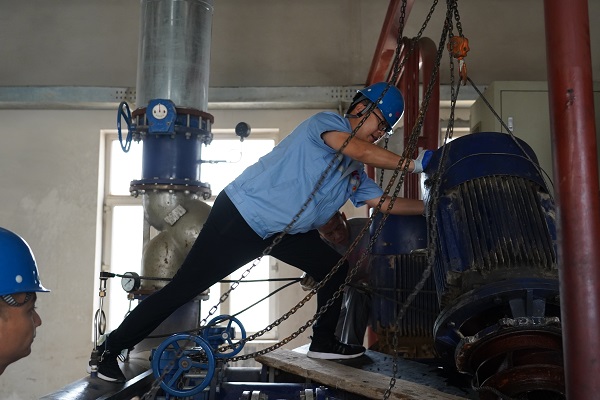 近日,筆者跟隨城發(fā)供熱公司橋靠分公司運(yùn)營(yíng)六所所長(zhǎng),來(lái)到了巨海城二區(qū)的加壓站,那里正在對(duì)站內(nèi)的設(shè)備進(jìn)行檢修。筆者一進(jìn)加壓站,就看到五個(gè)身強(qiáng)體壯的男同志正在合力拆卸一個(gè)1米多高的循環(huán)泵,他們有的拉著鋼絲繩,有的往下面墊木板,每個(gè)人的手臂上是青筋暴起,臉憋的通紅。別看這么不起眼的一個(gè)循環(huán)泵,5個(gè)人用了半小時(shí)才拆卸下來(lái)。