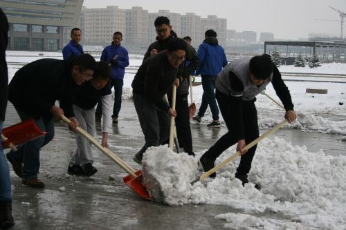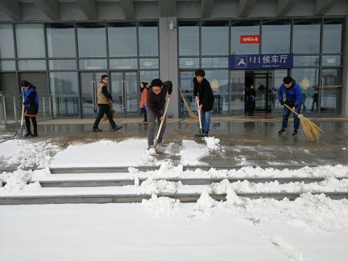 上午九點整,24名青年團員準時在城發(fā)客運公司站前廣場集合,對站前廣場上的積雪進行清掃。青年團員們不怕臟,不怕累,經過近一個小時的認真清理,干凈整潔的站前廣場呈現(xiàn)在大家眼前。