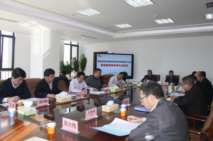 2018年3月23日,城發(fā)公司召開第五屆董事會第七次會議。會議聽取、審議、表決了《城發(fā)公司2017年度工作報告及2018年度工作安排》、《城發(fā)公司2017年度財務(wù)報告》、《城發(fā)公司2017年度預(yù)算執(zhí)行情況及2018年度預(yù)算(草案)報告》等15項議案。議案內(nèi)容涉及公司2017年經(jīng)營情況,2018年預(yù)算及公司重大投資、對外擔(dān)保等事項,議案均獲得董事一致表決通過。