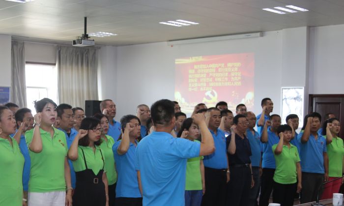 大會在莊嚴的《國歌》聲中拉開帷幕,面對鮮紅的黨旗,由分公司組織委員王艷雄領誓,全體黨員舉起右拳面向黨旗宣誓我志愿加入中國共產(chǎn)黨,擁護黨的綱領,遵守黨的章程,重溫入黨誓詞使全體黨員再一次受到了心靈的洗禮、思想的震撼。