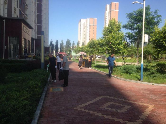 客服提升小組在小區(qū)明顯位置擺放展臺和宣傳畫,向業(yè)主征詢服務(wù)滿意度,發(fā)放關(guān)于消防安全等宣傳單;保潔綠化小組成員配合小區(qū)全體保潔人員開展清掃環(huán)路衛(wèi)生、撿拾草坪內(nèi)的垃圾、清洗垃圾箱等衛(wèi)生清潔工作;工程提升小組成員對金城小區(qū)的單元門開啟不靈、關(guān)閉不嚴(yán)等問題進行了現(xiàn)場維修。