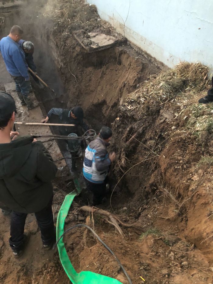 11月11日下午,中繼泵房專項(xiàng)高壓電閃落,1#、2#、3#循環(huán)泵因自動(dòng)保護(hù)驟停。出現(xiàn)異常后,調(diào)度立即通知京能電廠降頻,檢修車間立即組織人員進(jìn)行巡線,經(jīng)過(guò)15個(gè)小時(shí)不間斷排查,12日上午,發(fā)現(xiàn)如意舊網(wǎng)主線和1#站支線漏水嚴(yán)重。分公司檢修車間、運(yùn)營(yíng)二所和保駕護(hù)航單位迅速制定搶修方案組織搶修,經(jīng)理丁成斌、副經(jīng)理鄭紅飛親自到現(xiàn)場(chǎng)指導(dǎo)搶修工作。為準(zhǔn)確找到失水點(diǎn),搶修人員穿著隔熱服進(jìn)入管溝內(nèi)查找漏點(diǎn)。由于漏水點(diǎn)管線錯(cuò)綜復(fù)雜,施工難度非常大。接近管道時(shí),發(fā)現(xiàn)漏點(diǎn)位置靠近井壁且管道腐蝕嚴(yán)重,壁厚較薄,采取整理外層補(bǔ)焊的方式進(jìn)行修補(bǔ)。