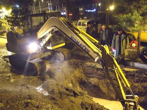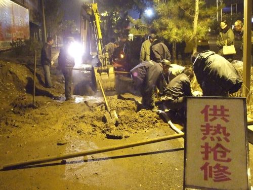 工作人員兵分幾路,對(duì)一次網(wǎng)和熱力站進(jìn)行泄水,同時(shí)在跑水地點(diǎn)進(jìn)行開(kāi)挖,并將水抽干,待破損管網(wǎng)露出后,按預(yù)定技術(shù)方案進(jìn)行更換和焊接。時(shí)值入冬,夜間溫度已在零下,相關(guān)領(lǐng)導(dǎo)及搶修人員一直在現(xiàn)場(chǎng)工作,無(wú)人休息,毫無(wú)怨言。在寒風(fēng)中工作人員咬緊牙關(guān),爭(zhēng)分奪秒,連續(xù)奮戰(zhàn)了10多個(gè)小時(shí),終于在第二日凌晨7時(shí),成功將跑水事故處理完畢,并于12時(shí)恢復(fù)了熱力站正常運(yùn)行。