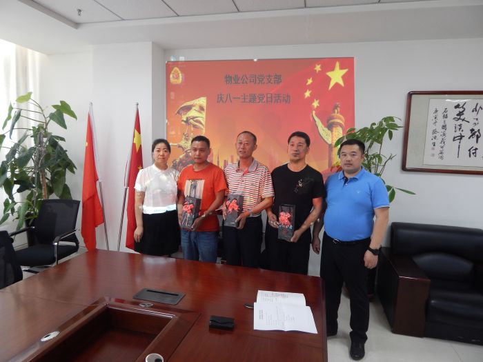 8月1日,物業(yè)公司黨支部開展“慶八一”主題黨日活動,共同慶祝中國人民解放軍建軍92周年,公司3名復(fù)轉(zhuǎn)軍人和支部全體成員參加了活動。