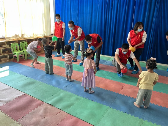活動現(xiàn)場,愛心小分隊一行將精心準(zhǔn)備的慰問品送到孩子們的手中,與他們親切交談,參觀孩子們學(xué)習(xí)、生活的環(huán)境,詳細(xì)了解孩子們的學(xué)習(xí)、生活狀況。隨后,愛心小分隊與孩子們進(jìn)行了搶板凳、接皮球等互動游戲,在歡聲笑語中,志愿者與孩子們結(jié)下了深厚的友誼。