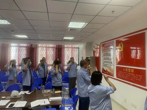 胡日查同志宣讀了集團(tuán)公司黨委審批通過(guò)齊樂、張學(xué)敏兩位同志成為中國(guó)共產(chǎn)黨預(yù)備黨員,莊永飛、劉濤兩位同志按期轉(zhuǎn)為中國(guó)共產(chǎn)黨正式黨員相關(guān)事宜,并向齊樂、張學(xué)敏兩同志表示了衷心祝賀,要求她們?cè)诮窈蟮膶W(xué)習(xí)和工作中不斷用實(shí)際行動(dòng)踐行初心使命,以黨員的標(biāo)準(zhǔn)嚴(yán)格要求自己,時(shí)刻保持共產(chǎn)黨員的良好形象、先進(jìn)本色。隨后,胡日查同志帶領(lǐng)齊樂、張學(xué)敏兩位同志和其他全體黨員同志高舉右手,莊嚴(yán)宣誓,再一次重溫入黨誓詞,重憶入黨初心。齊樂、張學(xué)敏兩位同志表示,作為新時(shí)代的青年,將牢記黨的宗旨,牢記入黨初心和使命,腳踏實(shí)地做好本職工作,以飽滿的熱情和昂揚(yáng)的斗志投入到工作中去。